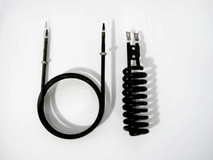 各種金属パイプを保護管としてコイル状電熱線を中心に保持し耐熱絶縁粉末(MgO)を充填後、固形化した直管状のヒーターです。複雑な形状に曲げ加工したり、取付用フランジや放熱フィンを巻く事が出来ます。 |