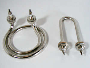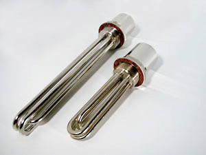 容器の底や側面に穴をあけるだけで取付可能なように、ネジブッシングをヒーターに溶接したもので、主として水用に使用されます。 |